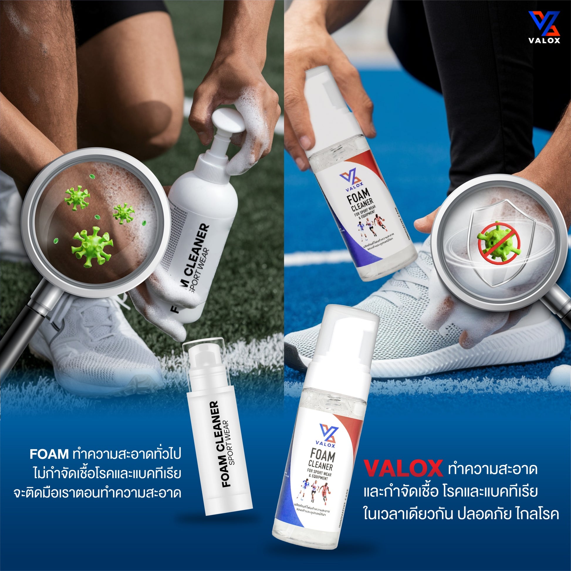 VALOX ตัวช่วยขจัดแบคทีเรีย และยับยั้งการเติบโตของเชื้อได้อย่างมีประสิทธิภาพให้ชุดกีฬาและรองเท้าของคุณสะอาด